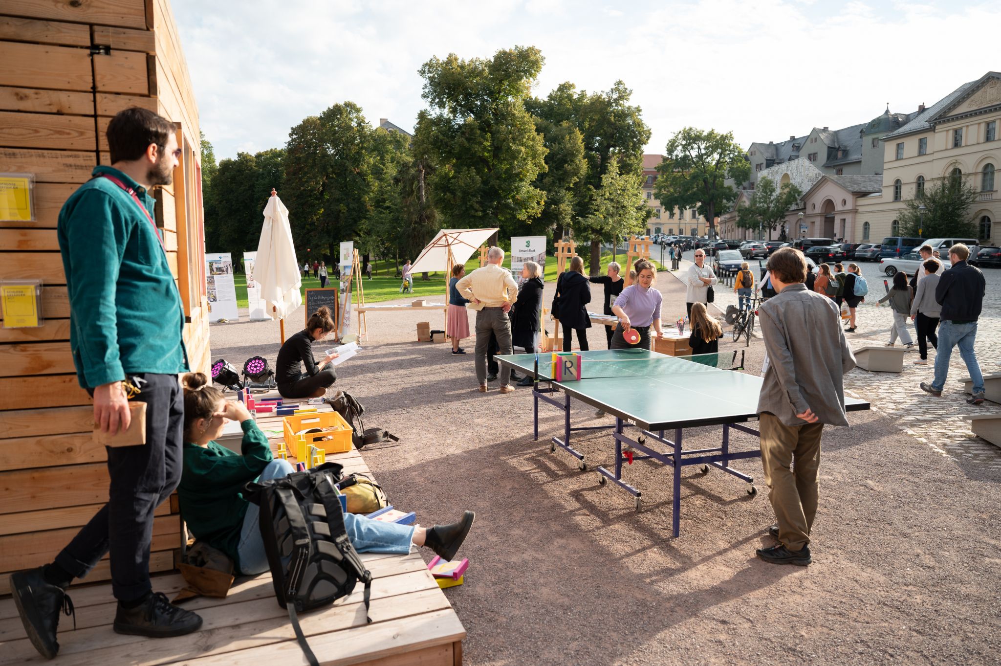 Am Nachmittag fand in Kooperation mit der Klassik Stiftung Weimar ein Vernetzungsprogramm im Sprachlabor vor dem Stadtschloss statt. Dort konnten Interessierte Informationen zur Projektgründung erhalten, sich Projekte über die Grenzen Weimars hinaus ansehen und ins Gespräch kommen. Den Abschluss machte eine Gesprächsrunde auf offener Bühne zum Thema „Fehlerkultur & schöner Scheitern“.
